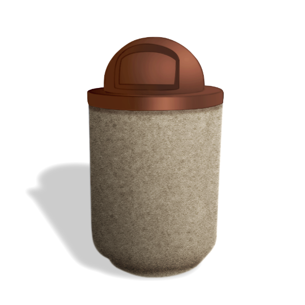 This 30 gallon round concrete trash receptacle adds a charming element to any park, mall location, and city sidewalk. The brown plastic self-closing dome top is attached with a security cable to deter theft. The included 30 gallon liner is made of commercial quality plastic ensuring durability for years. Available in assorted colors and finishes that complement all locations. Manufactured in the USA and backed by a commercial warranty for peace of mind and quality.
