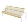 This 4 foot bench with contoured arms and legs makes a beautiful and comfortable addition to a park or school. Made of plastic coated 3/4" expanded metal, 2 7/8" legs. Plastic coating known as thermoplastic is available in either textured polyethylene or plastisol. These benches are in-ground mount for a permanent installation. We also have matching trash cans and picnic tables.