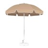 This 7.5 Ft. umbrella has the classic style of a patio umbrella with the quality of a market umbrella. These umbrellas have stainless steel parts and a silver mist coating for protection against peeling and rotting. This umbrella features 9 oz. marine grade fabric, built to withstand heavy outdoor use and all day exposure to sun. The aluminum frame and triple stitched pockets are durable against weather and rough employee handling. Choose from three frame options: silver coated aluminum, white coated aluminum, and wood grain coated aluminum.