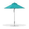 This 7.5 Ft. octagonal aluminum rib market umbrella has a sturdy 1.5” diameter center pole and 1/8” square ribs with stainless steel parts and a silver mist coated frame. The pulley and pin system makes this umbrella easy to close for overnight storage. The heavy duty 9 oz. marine grade fabric is built to withstand 24/7 outdoor exposure. Every detail has been considered in the construction of the umbrella: the square ribs have resistance against abuse, the silver mist coating provides protection against U.V rays, the pockets are triple stitched so they aren't torn, and the ball top protects the umbrella when being dropped.