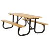 This 8 foot 'J2' series rectangular picnic table is made of heavy duty frame galvanized 2 3/8 inch O.D. schedule 40 pipe. Top and seats are recycled plastic reinforced with steel ribs. Center cleat holds top level and the 1 15/16 inch O.D. cross braces stabilize this extra heavy frame. Convenient walk-thru design and welded rigidity can stand up to rough use.