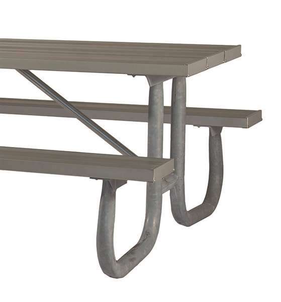 This heavy duty picnic table frame can be used to make a 12 foot rectangular picnic table. Made from 2 3/8" O.D. schedule 40 pipe with center cleats and cross braces to stabilize the frame. These picnic table frames are hot dipped galvanized and extra wide for long service and durability. With these frames, you can make a wooden picnic table, an aluminum picnic table, or even a recycled plastic picnic table. Planks are not included, this is a purchase for the frame only.