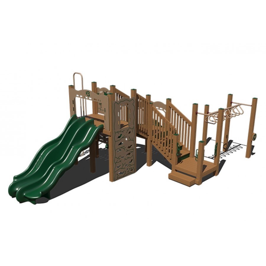 The Skyward Playground has a little for everyone. For those who love to climb there is a climbing wall, an arched climber, and the bubble climber. If children prefer sliding this structure has not 1, not 2, but 4 different slide styles! ADA stairs allow all children from 5 to 12 years old to have some playtime. Primarily constructed from recycled plastic with molded plastic and powder-coated steel fixtures this playground is ready for touch weather and hard play. The Skyward goes great in parks, schoolyards, and apartments. Plus it is available in nearly endless color combinations.