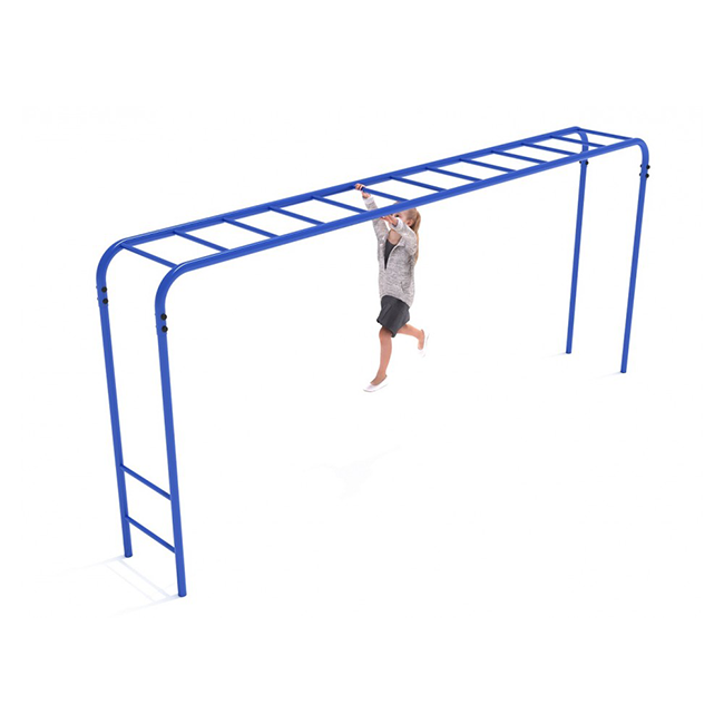 The Straight Overhead Scaling Ladder is an excellent equipment choice for any outdoor playground or fitness area. Boasting 13 rungs on top and two on either side, kids will have to have fast reflexes in order to reach the other side as quickly as possible. This fitness equipment is great for improving physical strength, fine motor skills and grip strength as kids will have to hold on tightly to the rungs in order to avoid falling down. The Straight Overhead Scaling Ladder is made from industrial-grade material and is certified to meet national standards for safety making it perfect for parks, fitness parks, and HOAs. Experience all the excitement and challenge the Straight Overhead Scaling Ladder has to offer!
